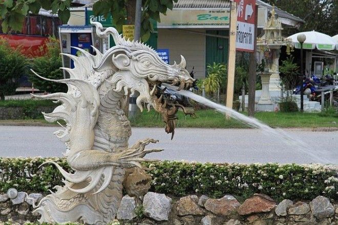 Территория самого храма хорошо облагорожена. Здесь находится множество фонтанчиков, причудливых скульптур, среди них много драконов которых очень любят в Азии и других разнообразных мифологических существ.