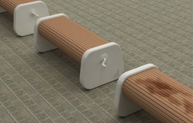 Эта скамейка никогда не бывает мокрой. Покрути ручку сбоку и сиденье повернется к тебе сухой стороной.