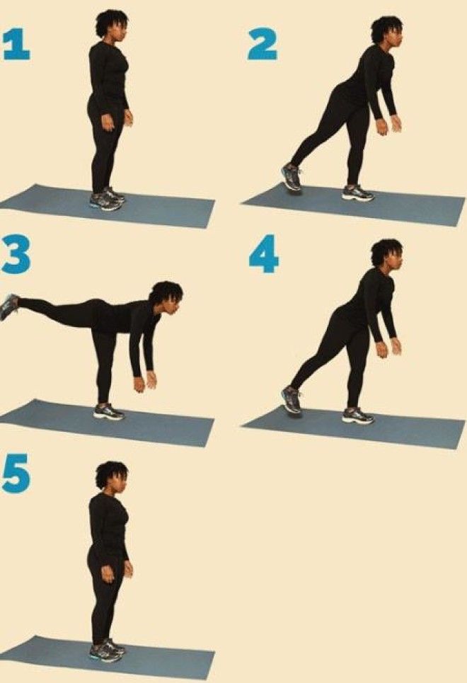 Вернись в изначальную позицию стоя, используя ногу-опору.