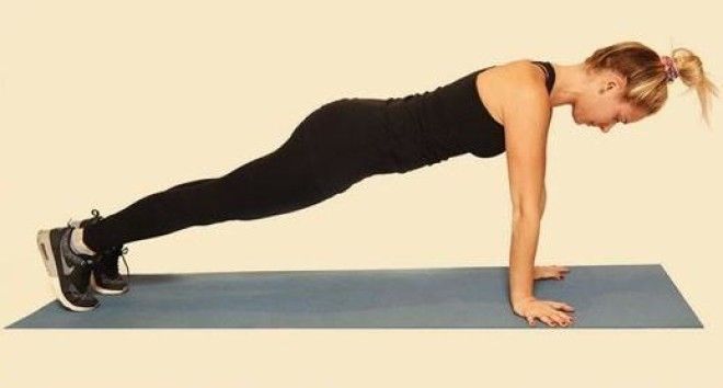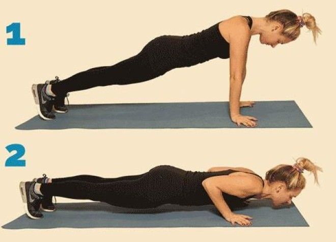 Шагать руками за пределы позиции для отжиманий.
