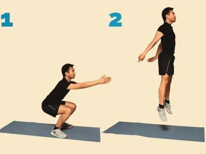Держи руки прямо перед собой, когда приседаешь. Когда подпрыгиваешь – заводи за спину.