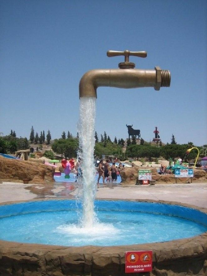 В Испании, Канаде, Швейцарии и, возможно в других местах, вы можете встретить на центральных площадях либо у крупных торговых (административных) центрах необычную скульптуру в виде парящего в воздухе крана. Большинство людей задаются вопросом, как же этот кран висит в воздухе. И тут на помощь этим людям приходит ваш любимый сайт интересных фактов. А разгадка этой скульптуры очень проста - в струе воды установлена полупрозрачная труба, по которой стекает вода и на которой держится кран.