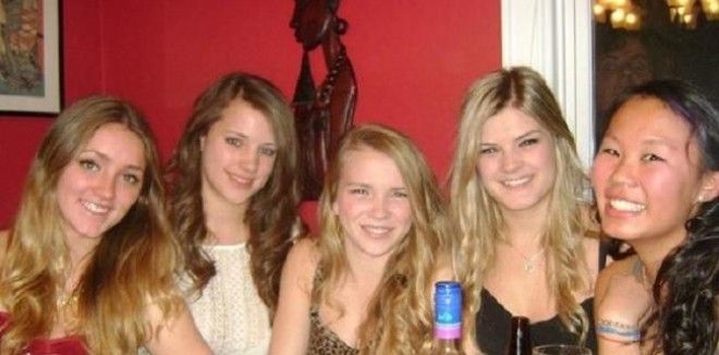 В центре между девушками.